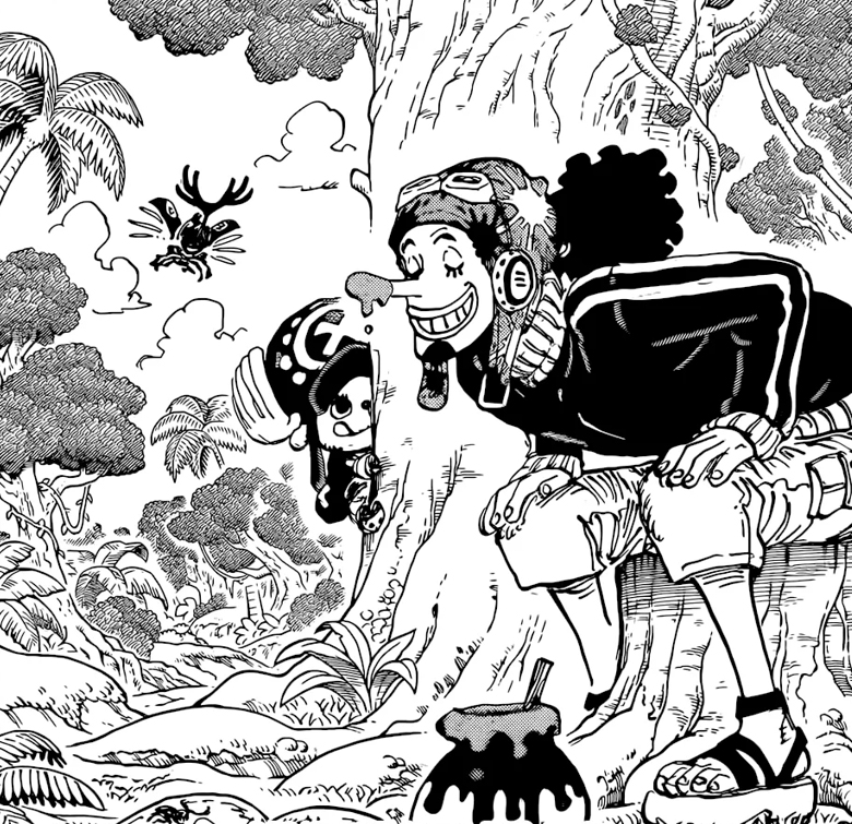 Capa: Usopp esperando para capturar alguns besouros, com mel na ponta do nariz.